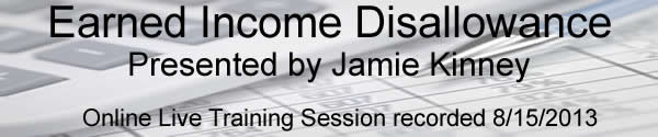 This is the FREE Onine Earned Income Disallowance Seminar that Jamie Kinney presented August 15, 2013.